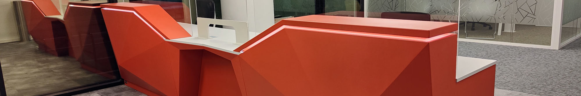 Nous dessinons, concevons et fabriquons des comptoirs et banques d’accueil sur mesure pour vos projets d’agencement.